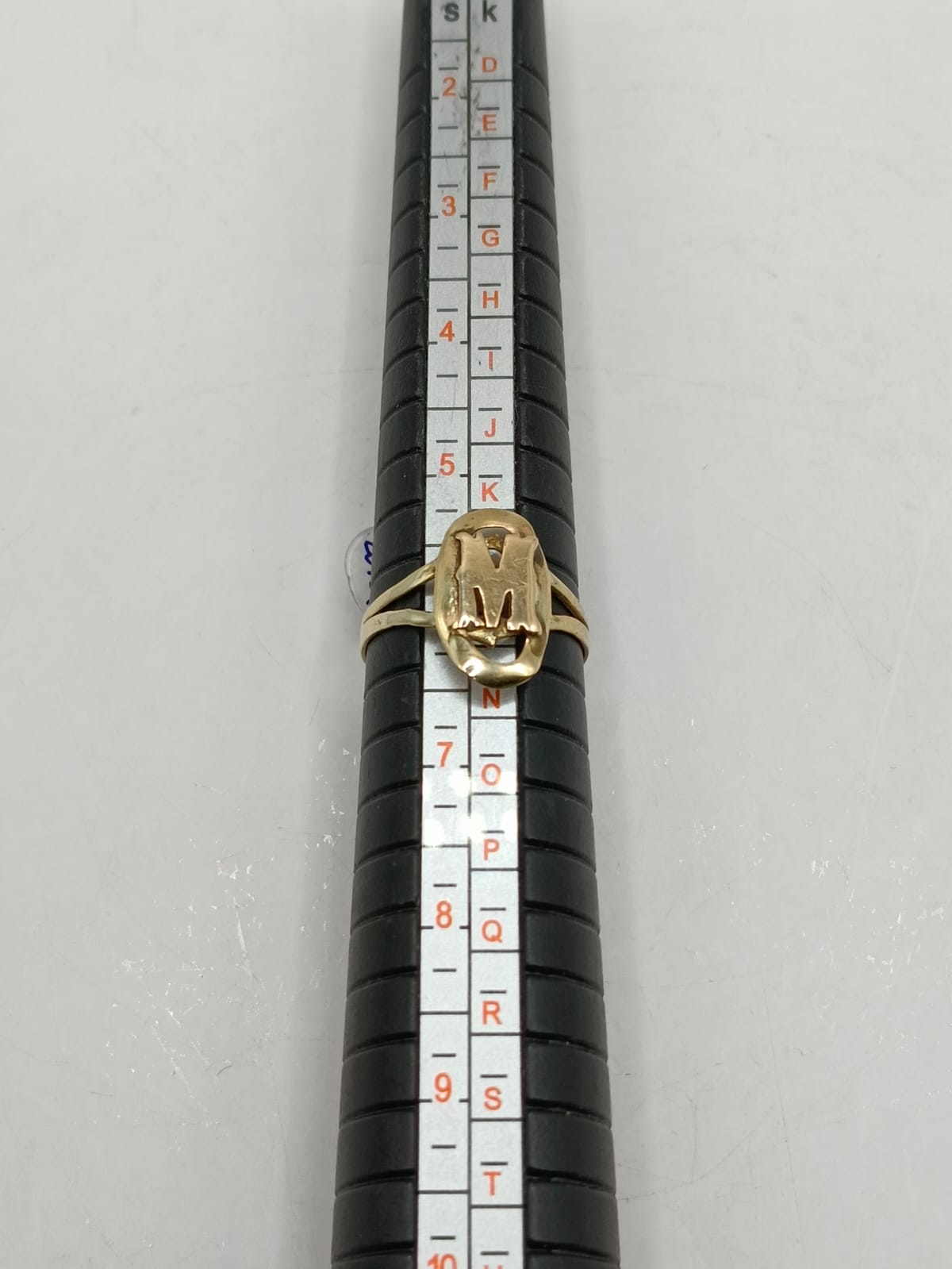 Anillo con inicial M, ORO 10k peso 1.3gr #6, usado