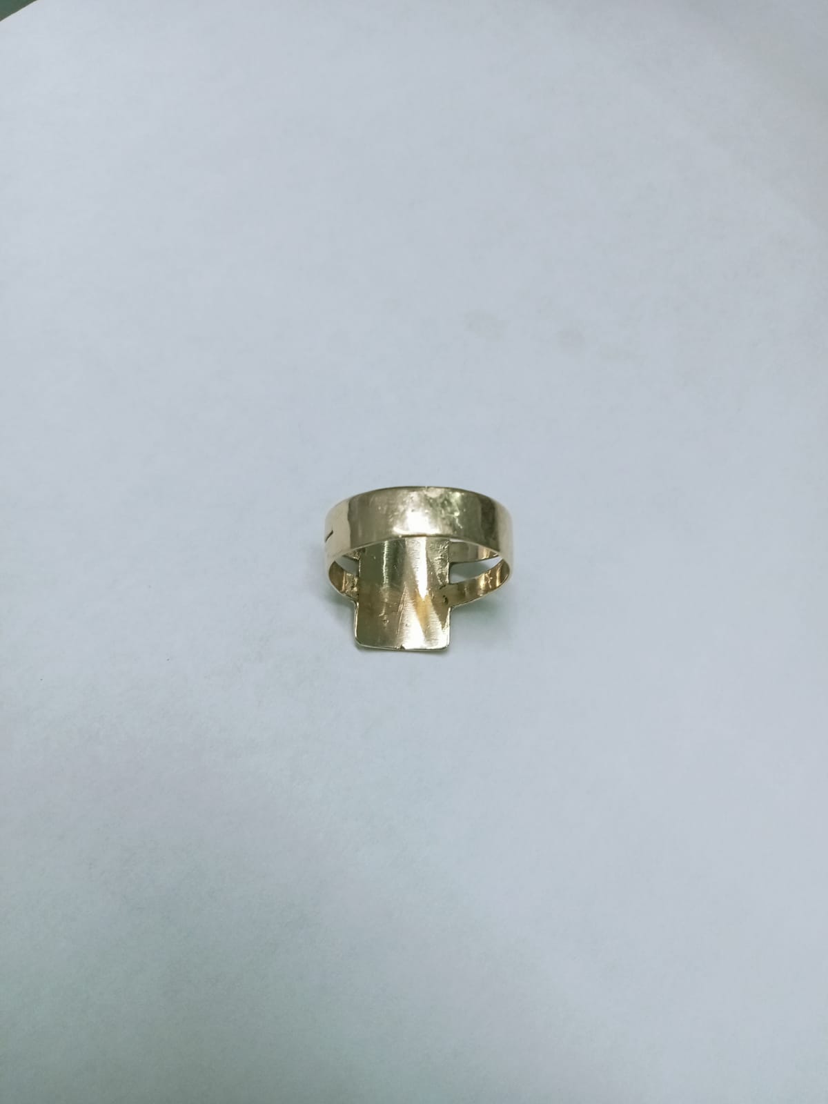 Anillo de Oro 10k – Diseño Placa con Flor Marcada – Talla 9