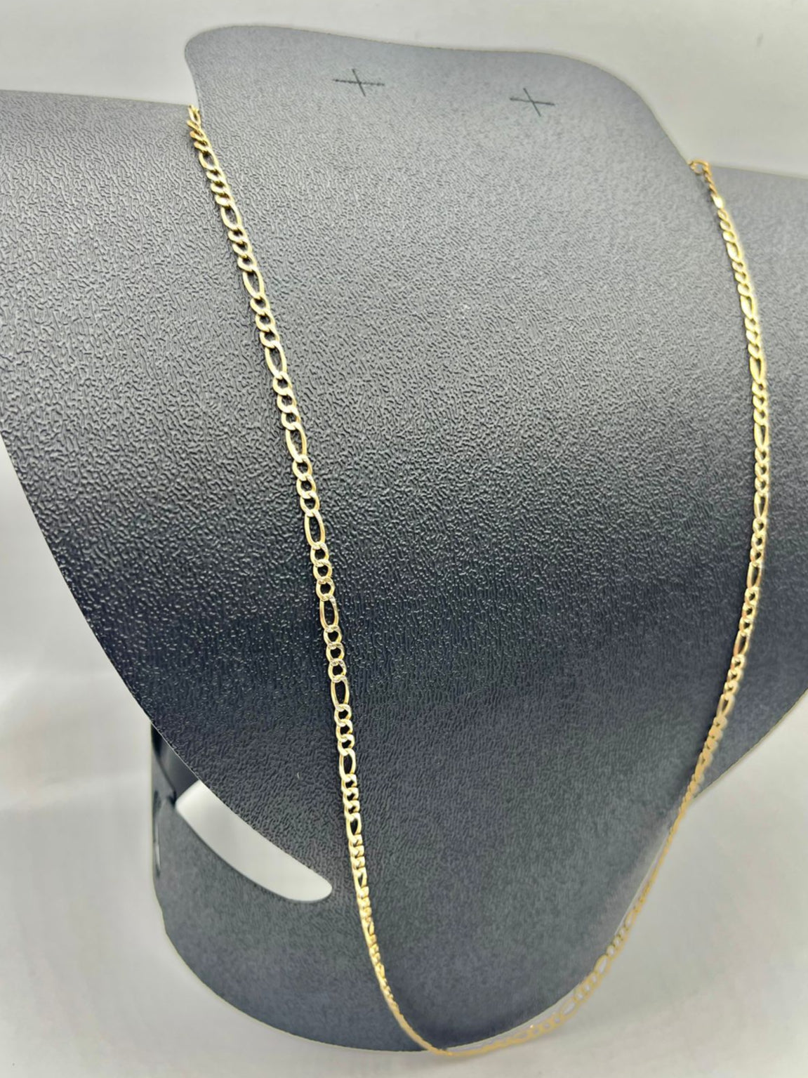 Imponente y resistente cadena de oro amarillo de 14 quilates, con diseño 3x1 (tres eslabones pequeños y uno largo), reconocida por su estilo clásico y elegante. Perfecta para uso diario o para lucir con dijes medianos a grandes. Su estructura sólida y su peso aportan presencia sin perder comodidad.