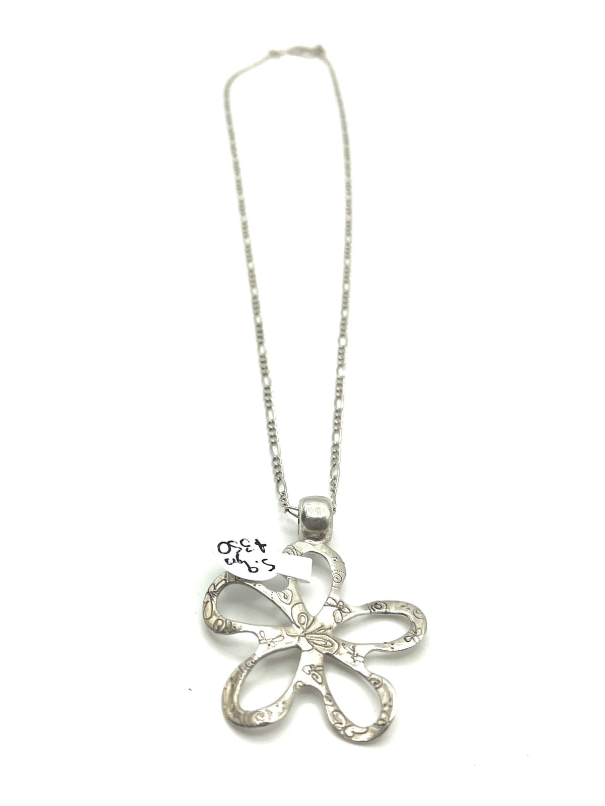 Cadena tejido 3 x 1 con dije de flor gde 26 cm 5.9 gr baño de plata