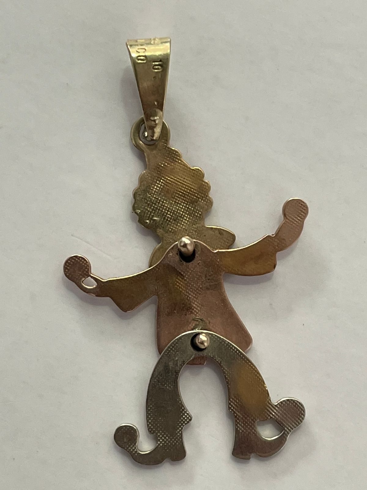 Dije de oro diseño payaso/ 3 oros 10K / 4 centímetros de largo