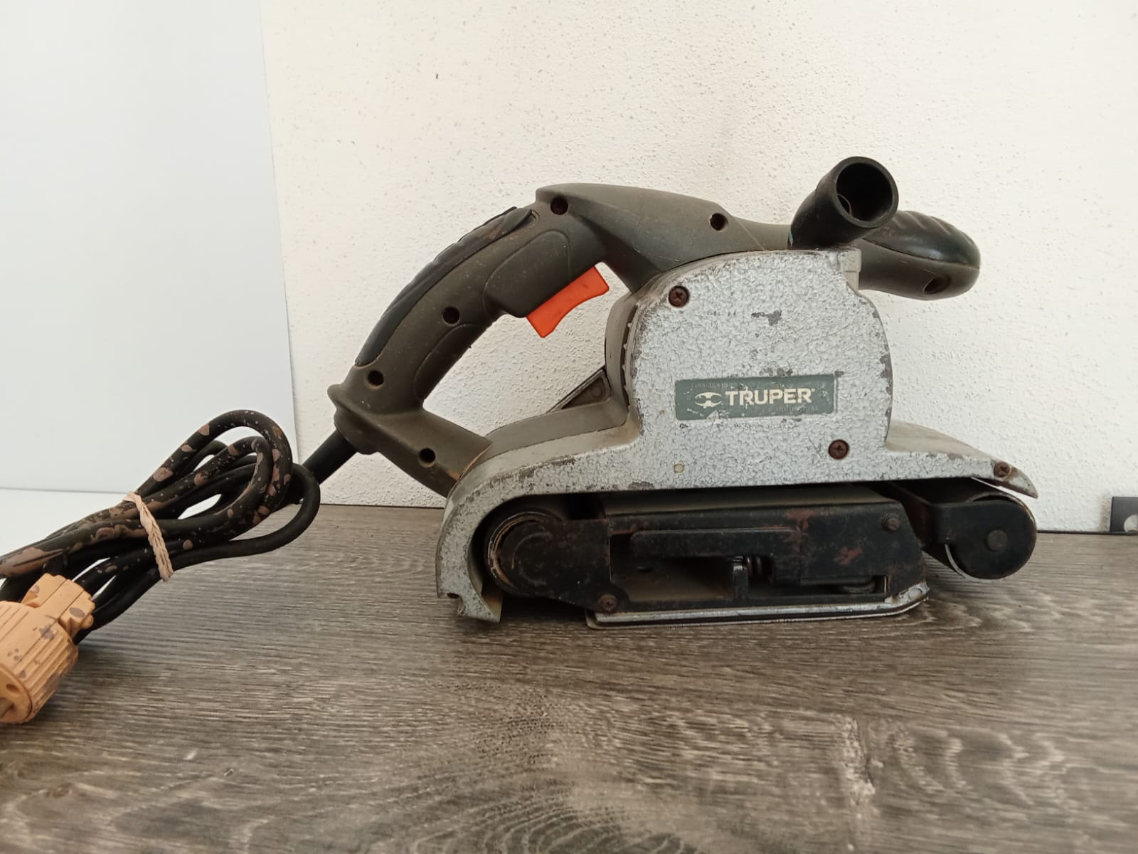 lijadora de banda marca Truper, usada pero en buen estado y funcionando correctamente. Ideal para trabajos de carpintería, nivelado de superficies y preparación de madera, metal o plástico.