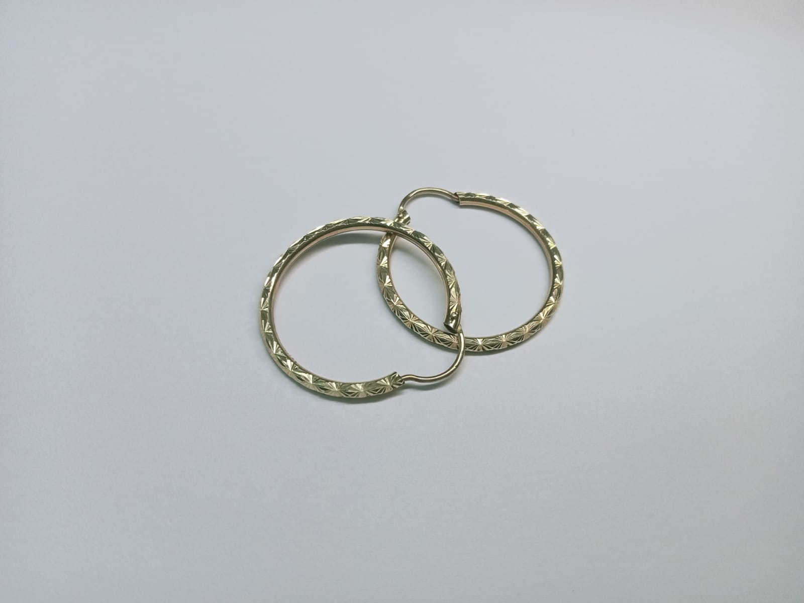 Destaca tu estilo con estos elegantes aretes elaborados en oro amarillo de 10 quilates con un fino acabado diamantado, que captura y refleja la luz con cada movimiento. Su diseño clásico y sofisticado los convierte en el complemento perfecto para cualquier ocasión, desde el día a día hasta eventos especiales.