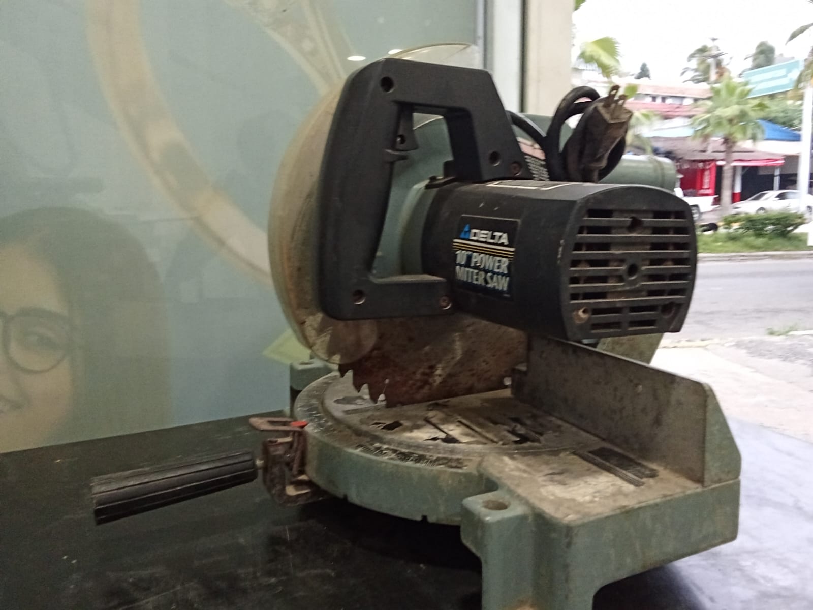 sierra de inglete marca Delta, usada pero en muy buen estado. Ideal para cortes precisos en madera, MDF, zócalos, marcos y más.