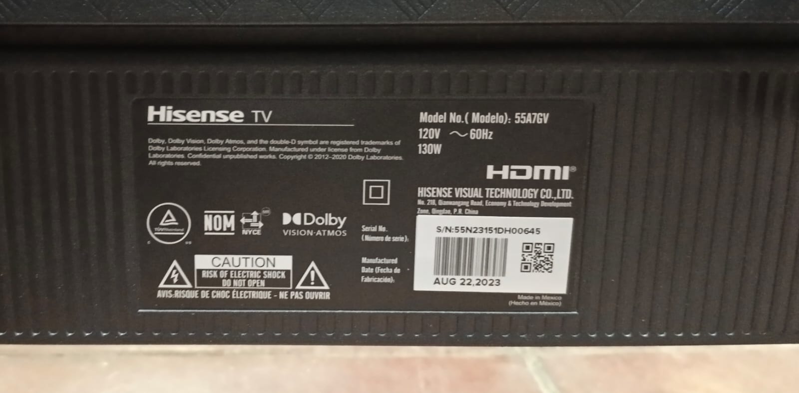 Smart tv HISENSE 55 pulgadas sin control, usado