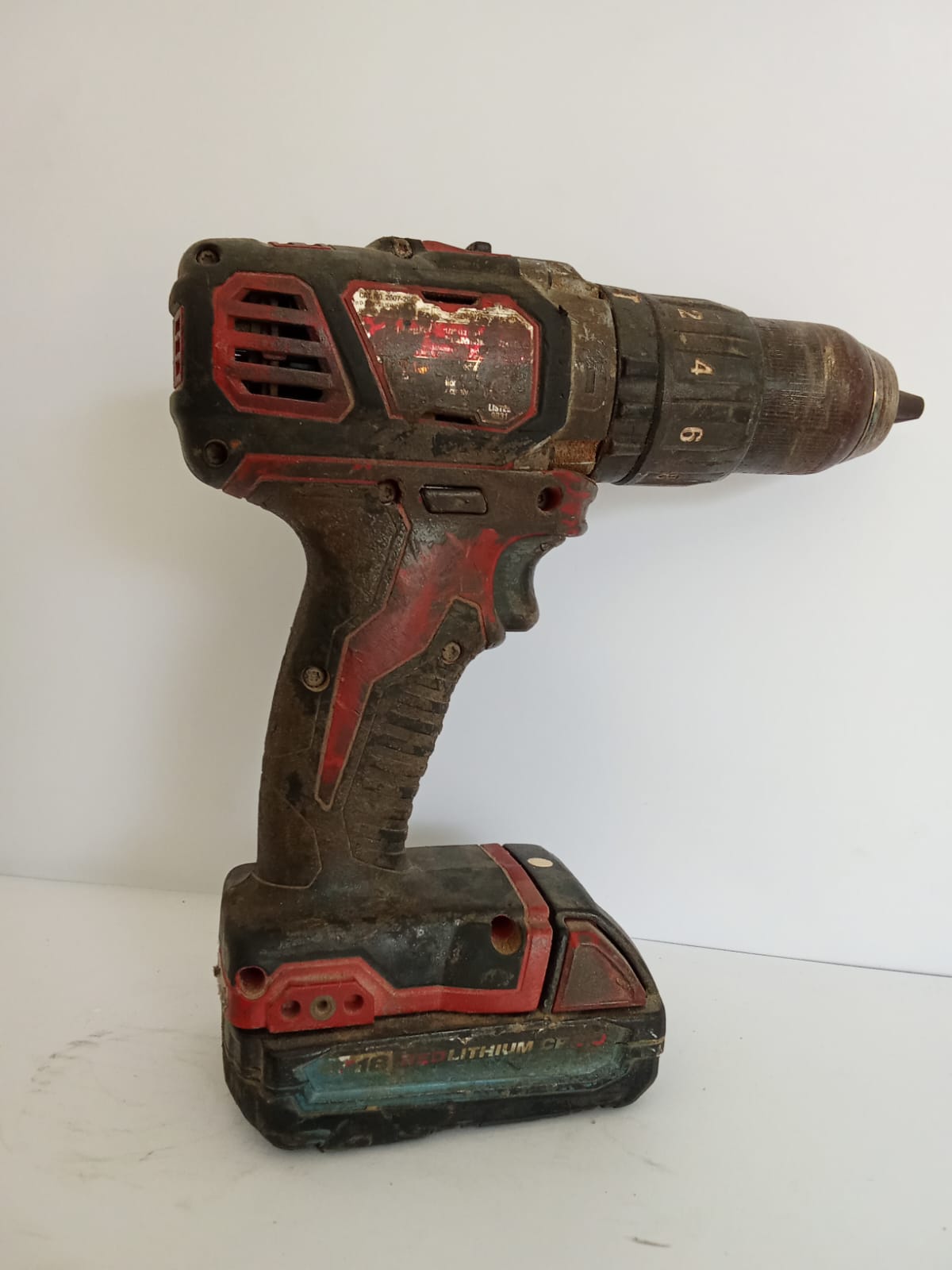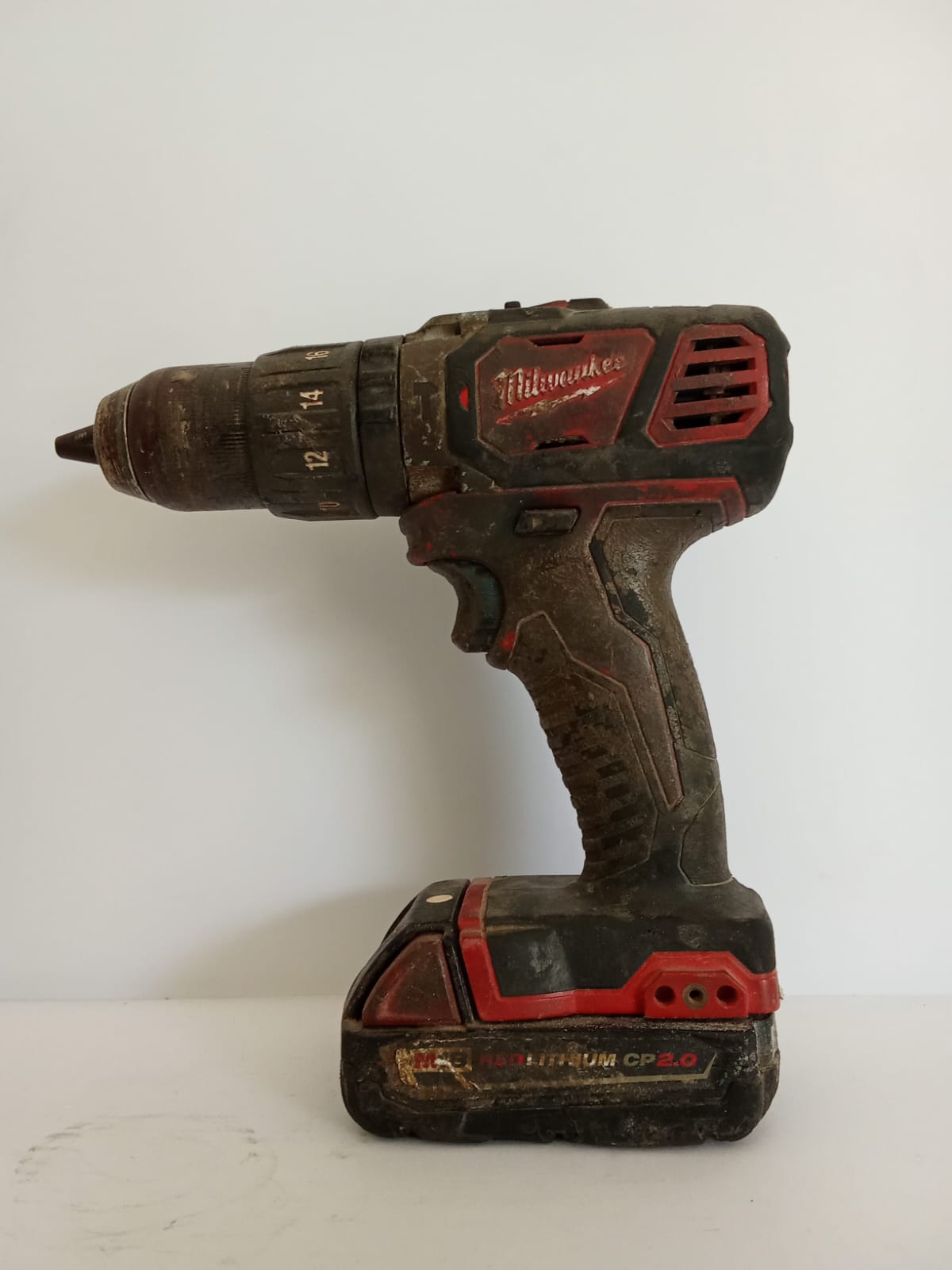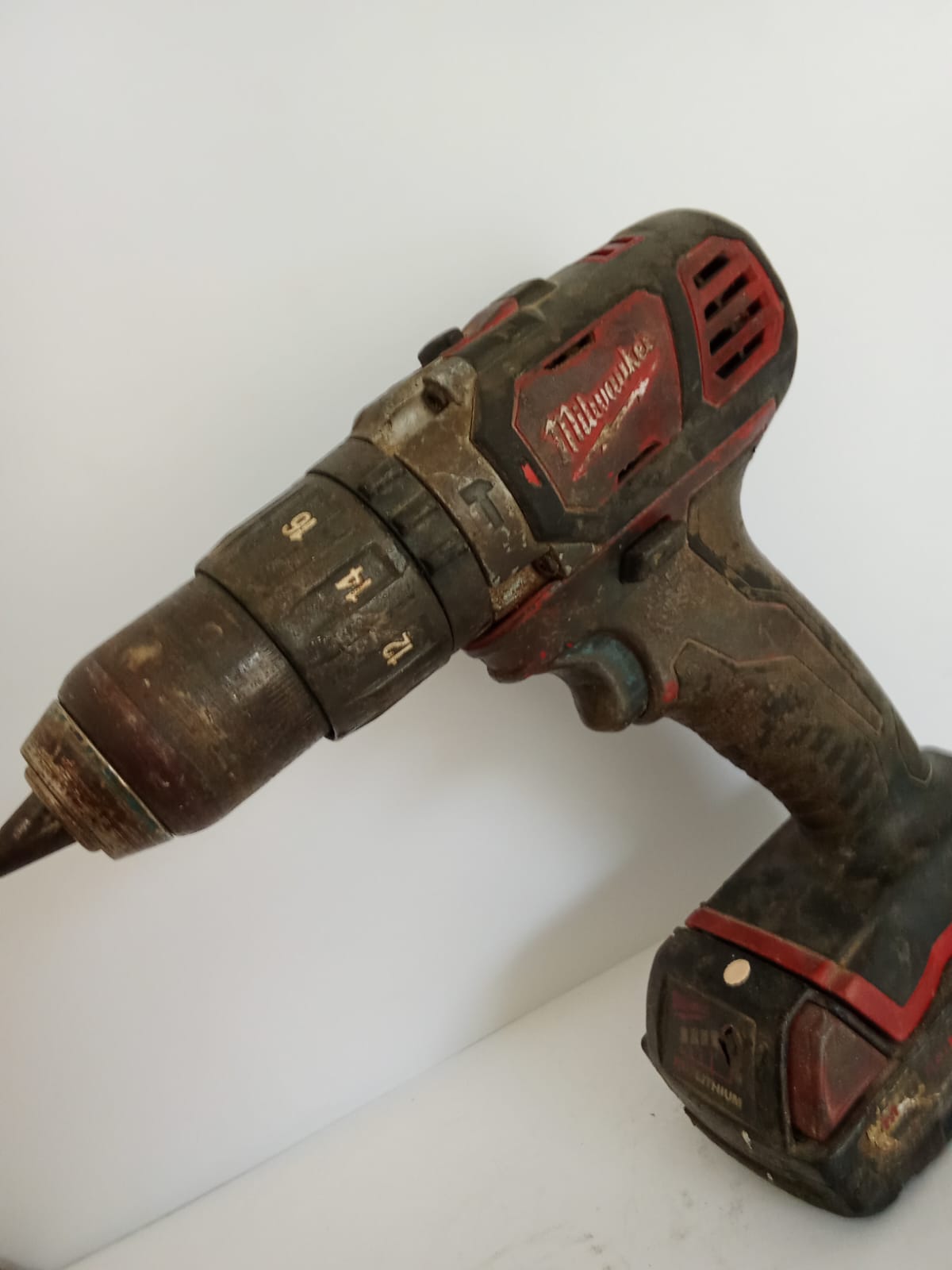 Taladro inalámbrico MILWAUKEE, usado y con signos visibles de uso, pero funcionando perfectamente.