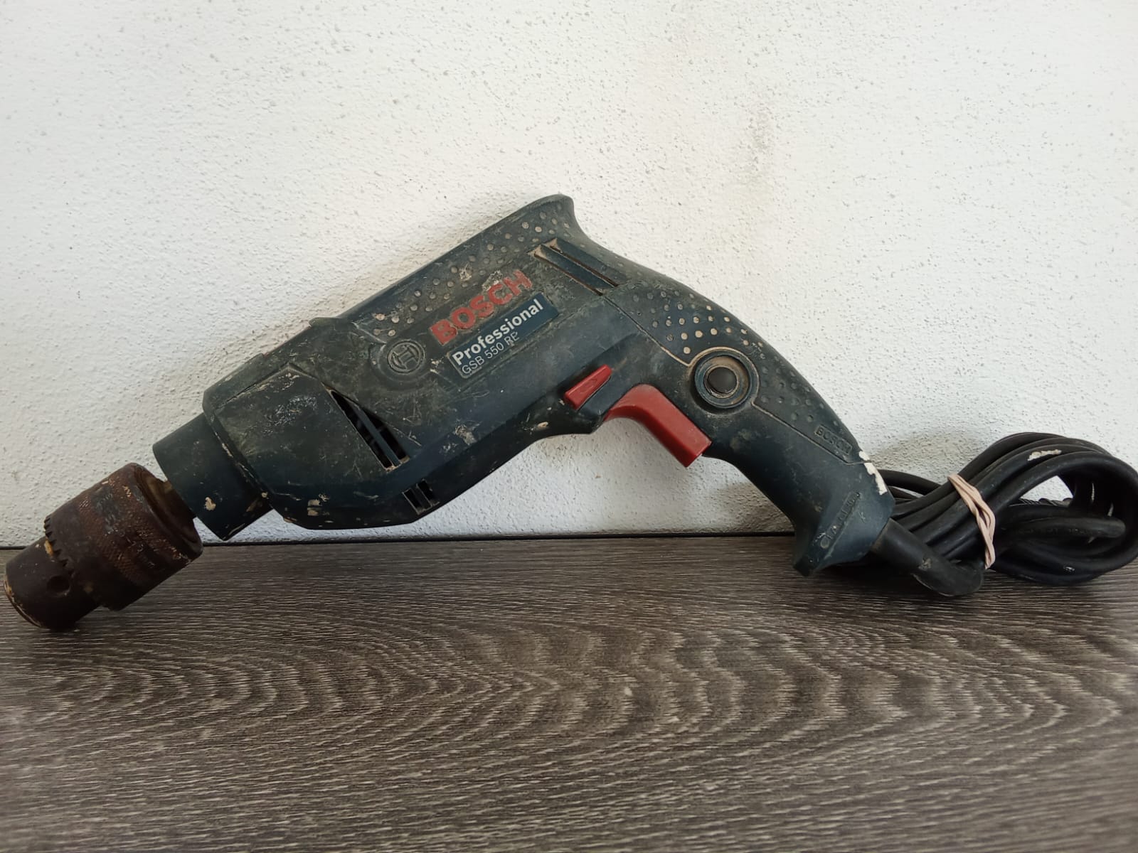 taladro percutor marca Bosch, ideal para trabajos de perforación en pared, concreto, madera y metal. Herramienta profesional y potente, perfecta para uso doméstico o en obras.